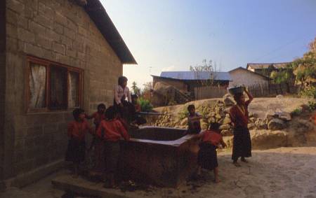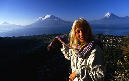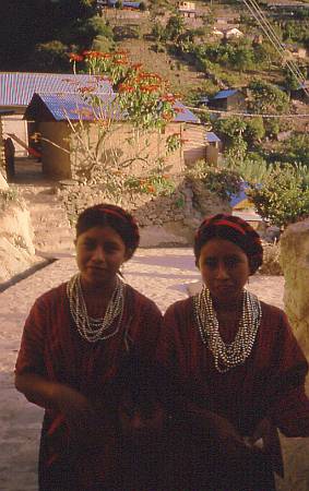 Girls from Santa Catarina, the next town clockwise on the lake from Panajachel. Every town in Guatemala has its own distinctive dress or "traje".