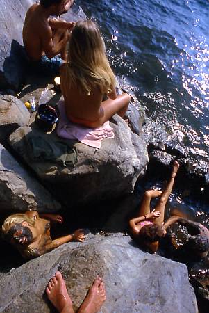 The Lake gets steadily lower since the 1980 earthquake, so the location of the various hot springs keeps changing. Here, the water comes from a deep crack in the rocks 2 people could get in.