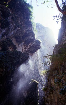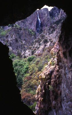 North of Malibu, California is a 150' high waterfall, with some caves in the water at the top. I installed a 4'X8' sheet of plywood and camped there.