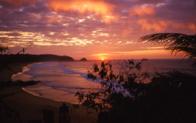 Sunrise from Gloria's, at the end of Playa Zipolite, Oaxaca. Mexico.