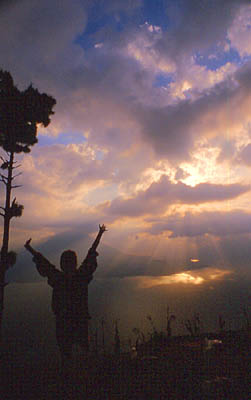 My friend Peri-elaine Paschal dancing the sun down, 2000' above Lake Atitlan.