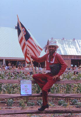 Harold, a revolutionary lawyer, civily disobeying the "No sitting on fence" sign at the Washington Mall the day of the US Bicentennial, July 4, 1976.