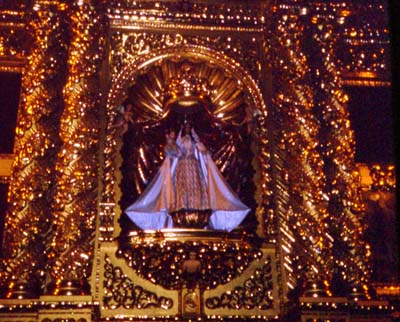 Basilica in Jalapa, Veracruz. Orizaba, highest volcano in N. America (18,850') is the snowcone jutting above and right of the clouds on the horizon; in full glory below.